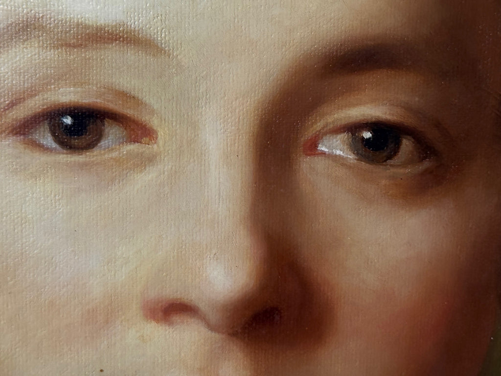 The painting demonstrates a disciplined command of layering, glazing, and tonal refinement, echoing the academic tradition of the Régence period.