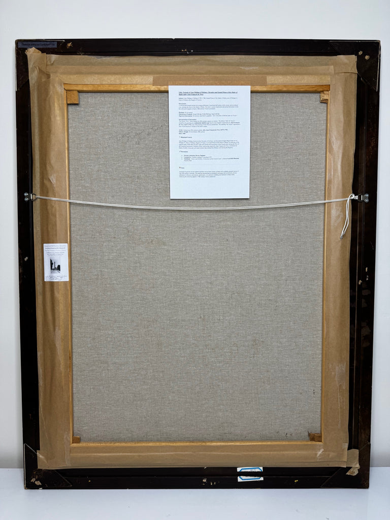 This imposing oil-on-canvas portrait (1985) presents Jean Philippe d’Orléans (1702–1748)—Grand Prieur of the Order of Malta and acknowledged son of Philippe II, Duke of Orléans, Regent of France.