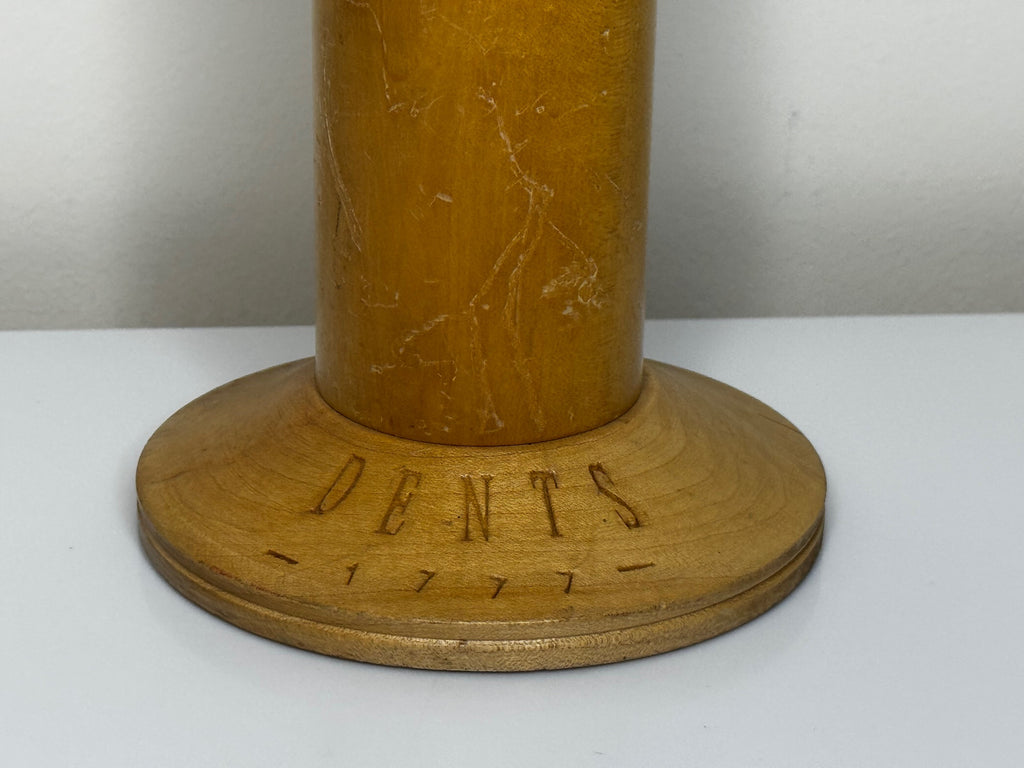 Beautifully crafted in solid wood, the hand features spring-articulated fingers and wrist, mounted on a sturdy circular base boldly carved with the maker’s name “DENTS.” Standing 45 cm tall, this display piece was once a centerpiece in luxury glove shops and department stores, used to present fine leather gloves in the most elegant fashion.
