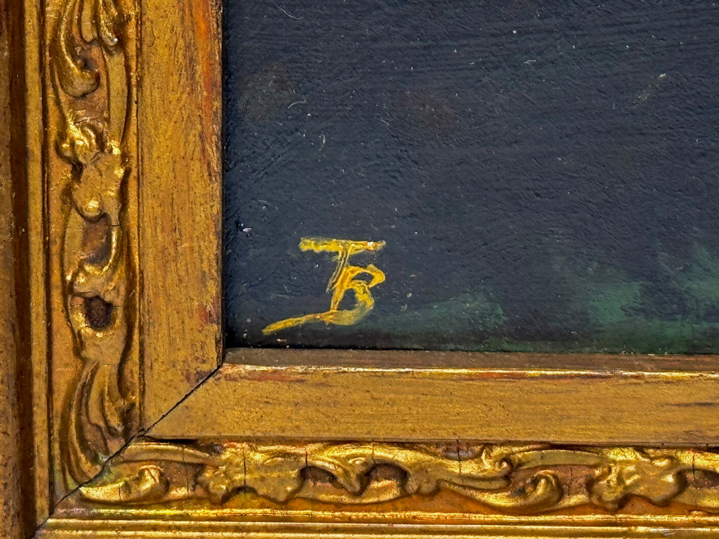 Signed in the lower-left corner with the monogram “T B”, indicating this is a mid-20th-century homage painted after the style of James Bell Anderson.