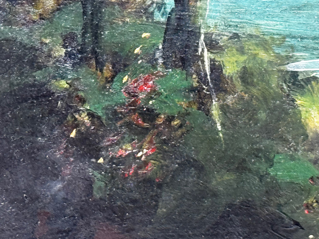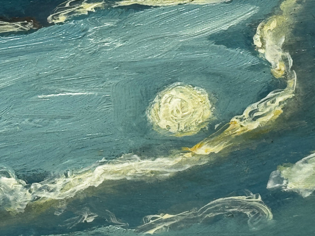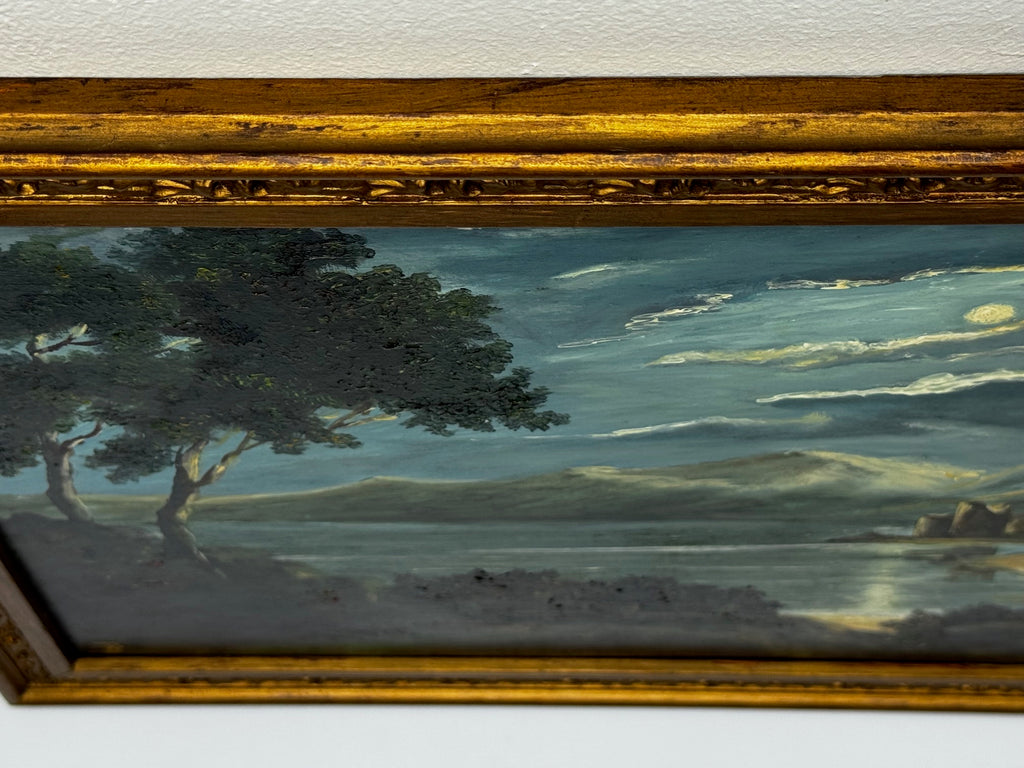 The moon’s reflection is painted with delicate luminosity, a true hallmark of classic nocturne painting