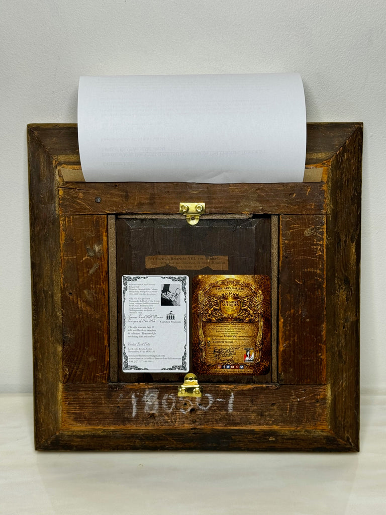 A refined Georgian antiquarian cabinet oil portrait masterpiece reinterpreting the most authoritative Tudor royal image — uniting Renaissance iconography with eighteenth-century historical revival. Small in scale yet rich in historical resonance, the painting reflects the enduring fascination with Tudor monarchy that shaped Georgian collecting culture and antiquarian scholarship.