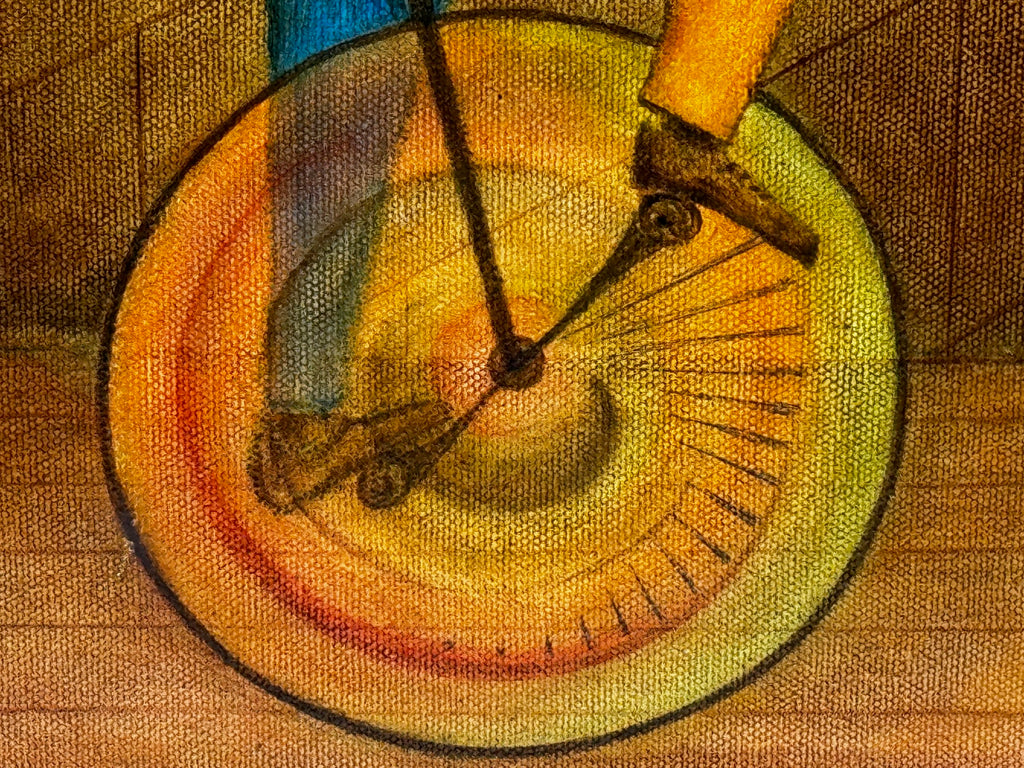 Circus Cyclist embodies the poetic essence of Lyrical Surrealism, where quiet fantasy becomes a metaphor for the inner world.