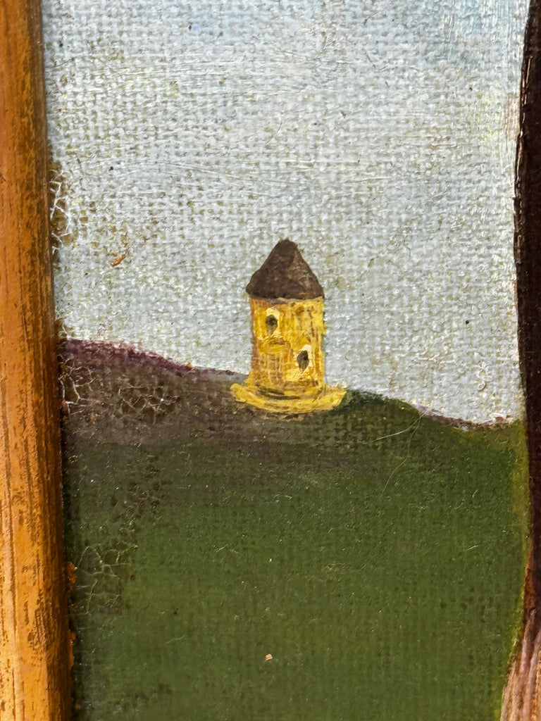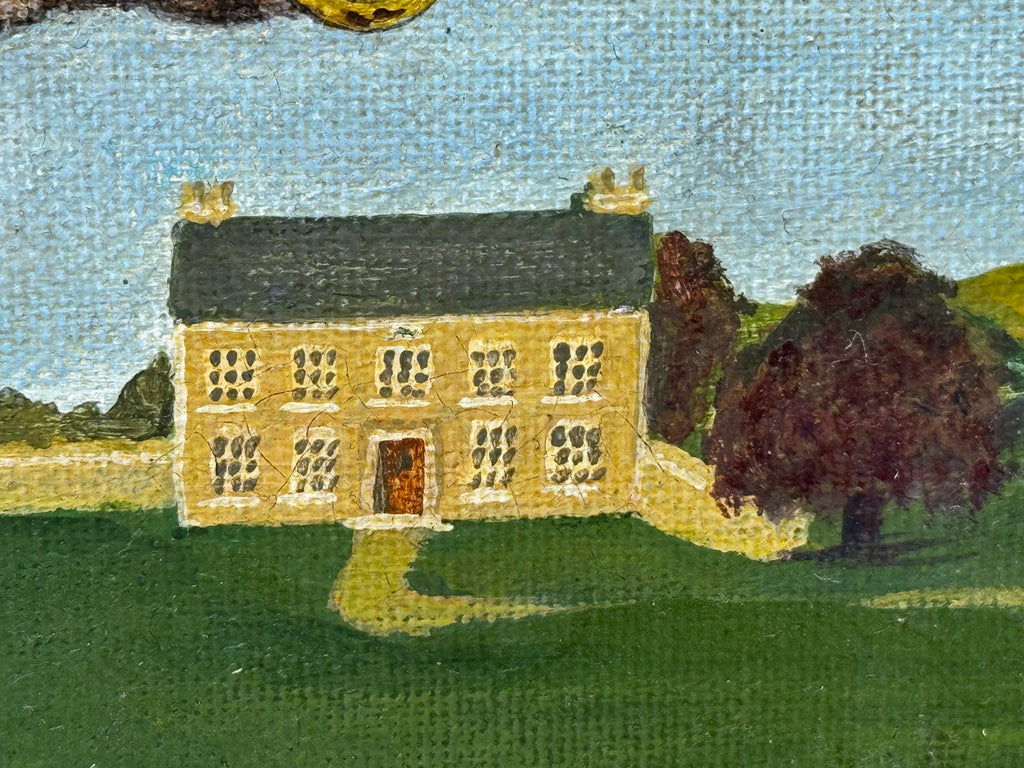 Subtle, controlled craquelure is visible within darker passages, enhancing the painting’s historic resonance. This patination recalls the aged surfaces of traditional country house works while remaining entirely consistent with late 20th-century execution.