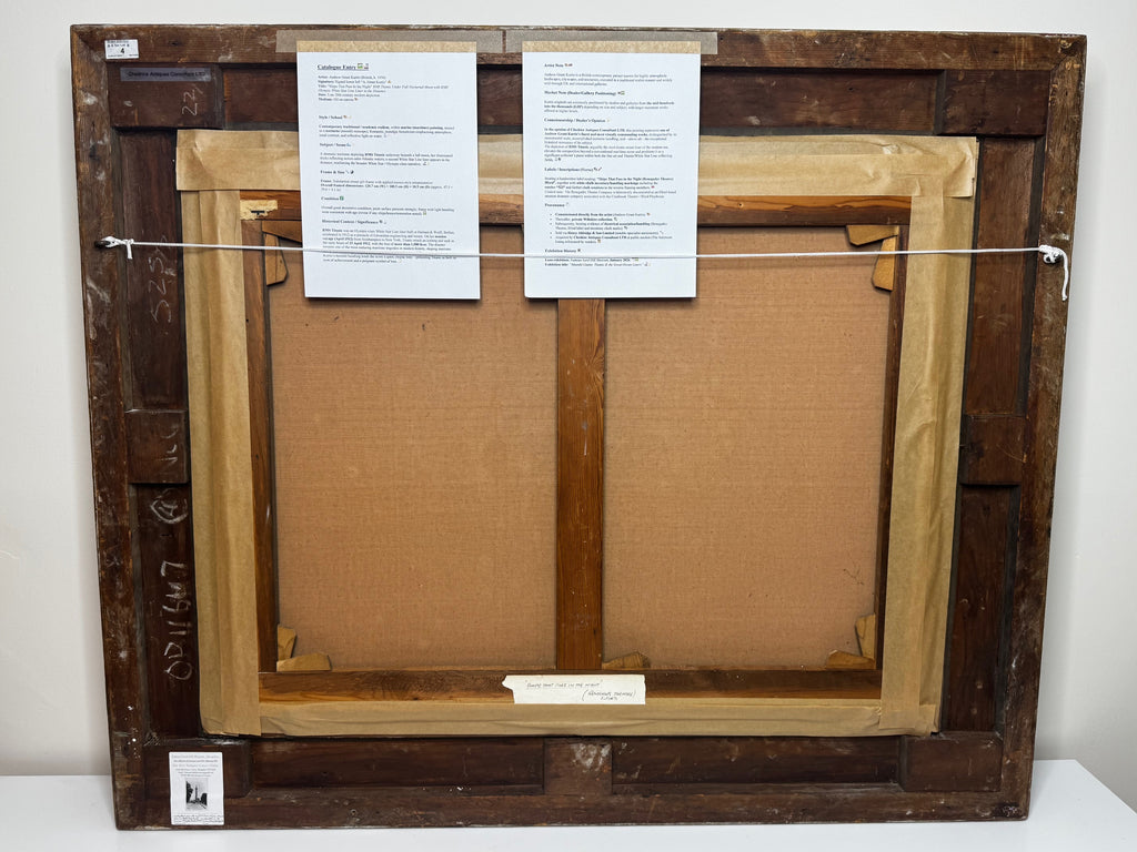In the opinion of Cheshire Antiques Consultant LTD, this is among Kurtis’s most visually commanding works: monumental scale, accomplished nocturne handling, and exceptional historical resonance. The inclusion of Titanic + Olympic positions it beyond a conventional marine scene and into true cross-collecting territory (fine art and White Star/Titanic specialists).
