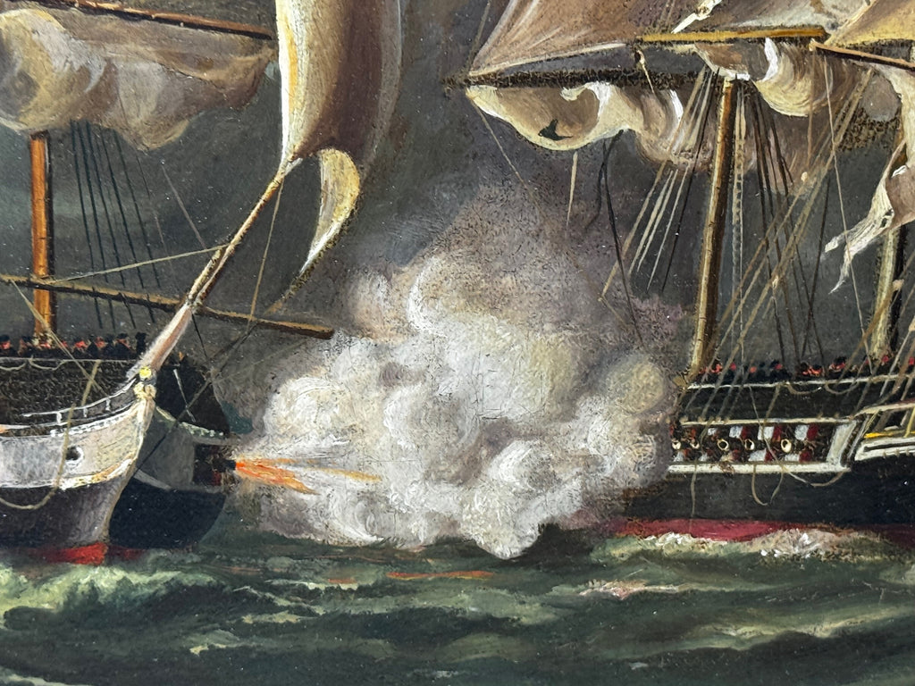 Unsigned, which is common for English School marine paintings of this period and entirely consistent with works produced for the decorative and collector market in the early 19th century 🕰️.