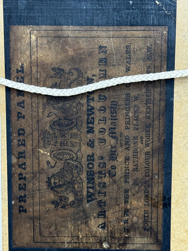 Executed in oil on an original Winsor & Newton prepared board — a commercially produced, period-appropriate support favoured by professional British painters of the late 19th century — the work benefits from a stable, fine-grained ground suitable for detailed rendering and for transportation in commissioned practice.